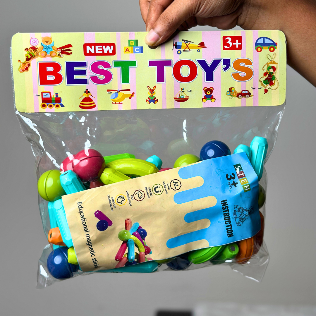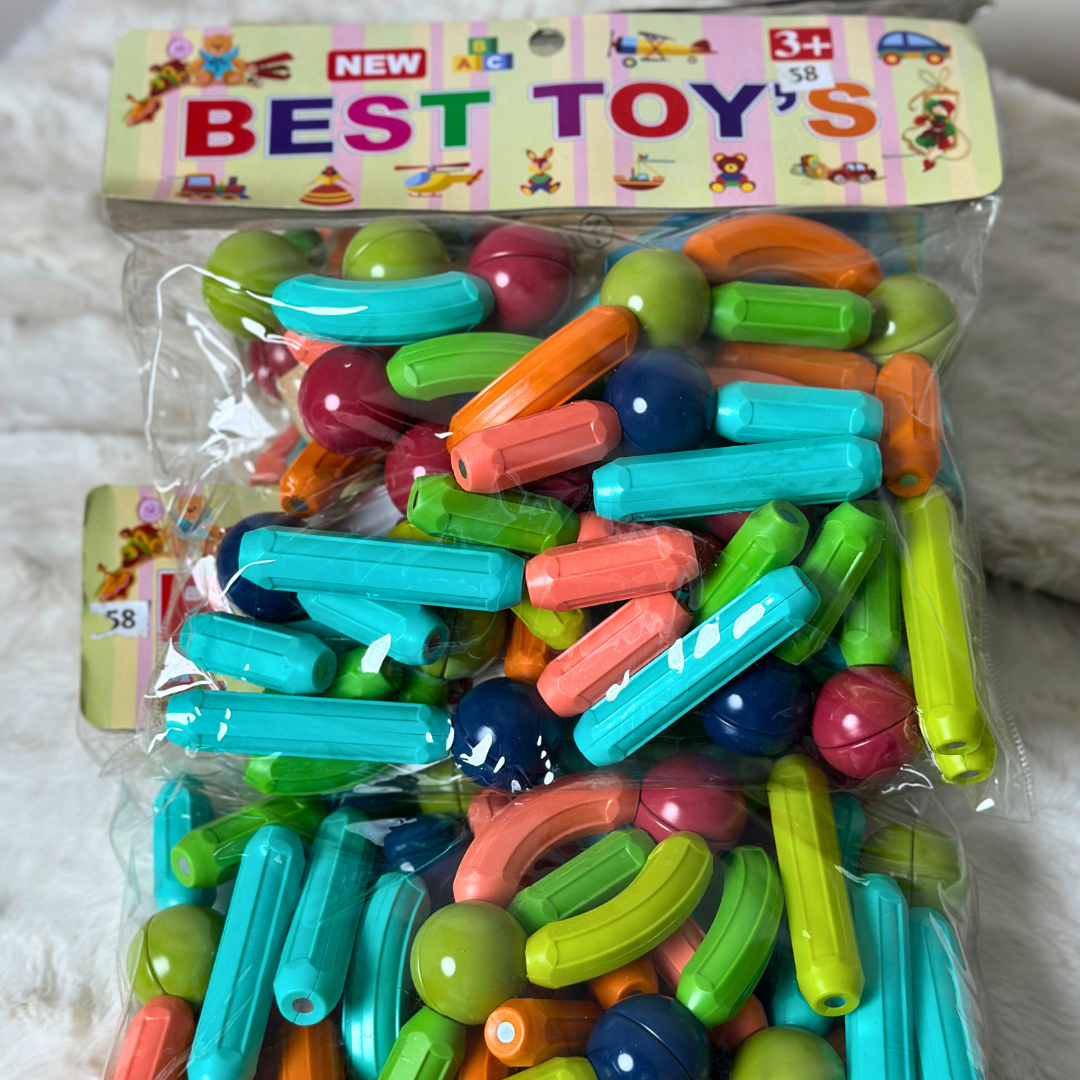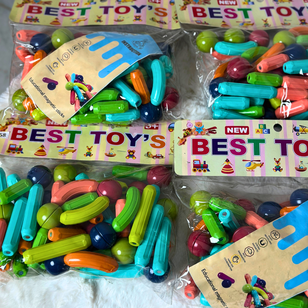 🧲 58PCS Magnetic Set – Includes sticks and blocks for endless building possibilities in both 2D and 3D.